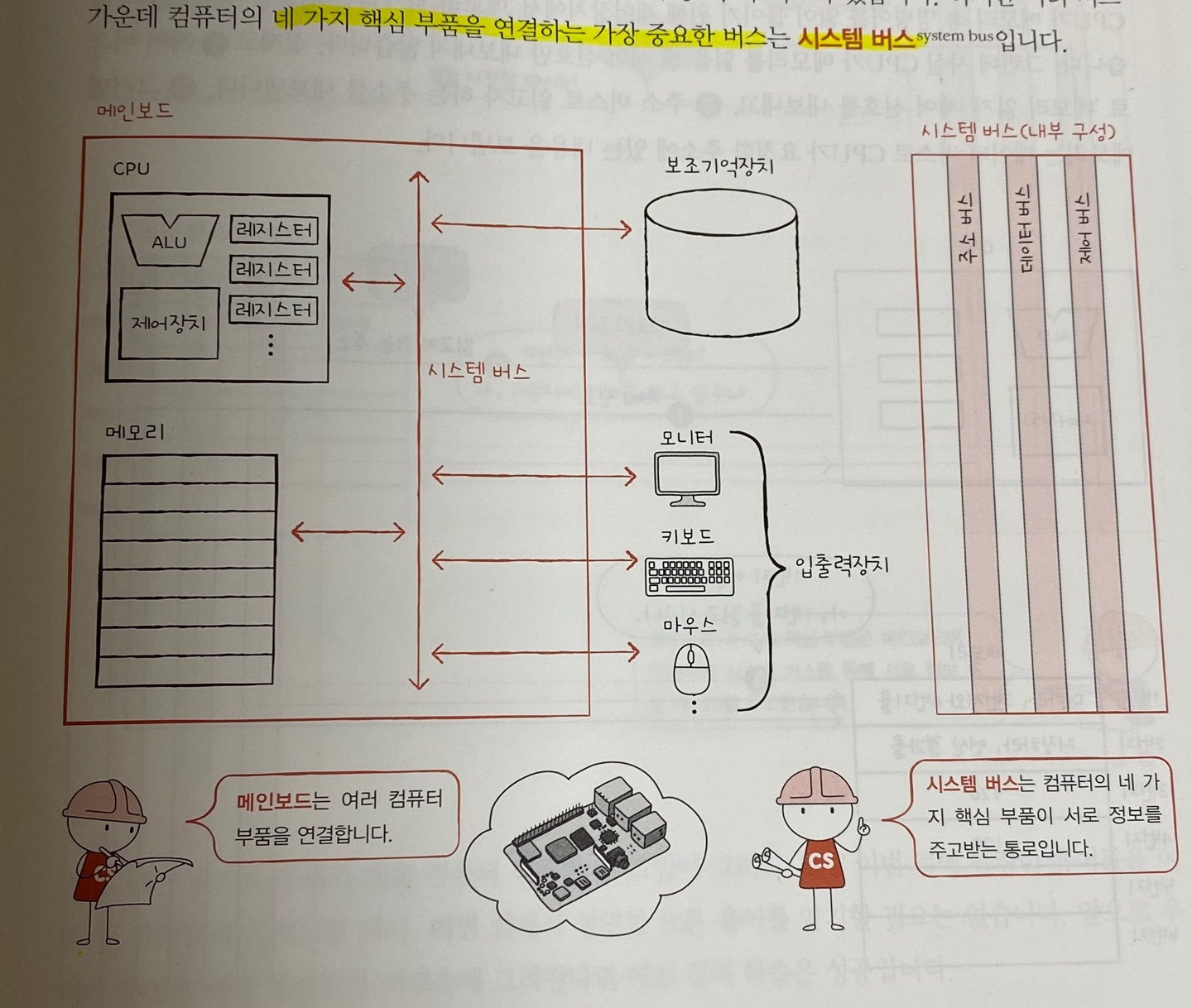 - 컴퓨터의 네 가지 핵심 부품 (CPU, 메모리, 보조기억장치, 입출력장치)