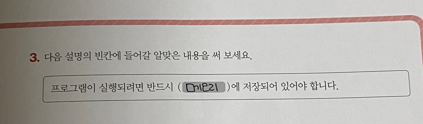 메모리 : 현재 실행되는 프로그램의 명령어와 데이터를 저장하는 부품